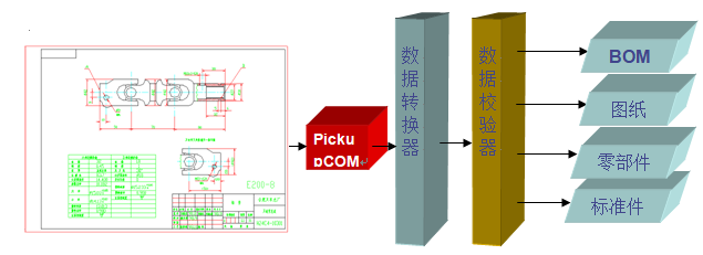 ? ? ? 原AutoCAD圖紙的歸檔和數(shù)據(jù)提取是一直困擾企業(yè)信息化實(shí)施過程中的一個(gè)問題。”共好”在這方面有非常好的表現(xiàn),我們提供了一個(gè)獨(dú)立于AutoCAD和PLM系統(tǒng)的PickUpCom組件,通過PLM調(diào)用該組件自動(dòng)提取AutoCAD圖紙中的歸檔信息(如圖號(hào)、名稱等)及產(chǎn)品結(jié)構(gòu)數(shù)據(jù)(裝配圖的明細(xì)表信息)。