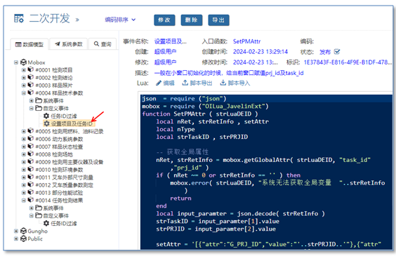 因為是與Gungho集成,前面描述過gungho的全局變量,這里開發的時候已經可以使用這些變量(prj_id , task_id)